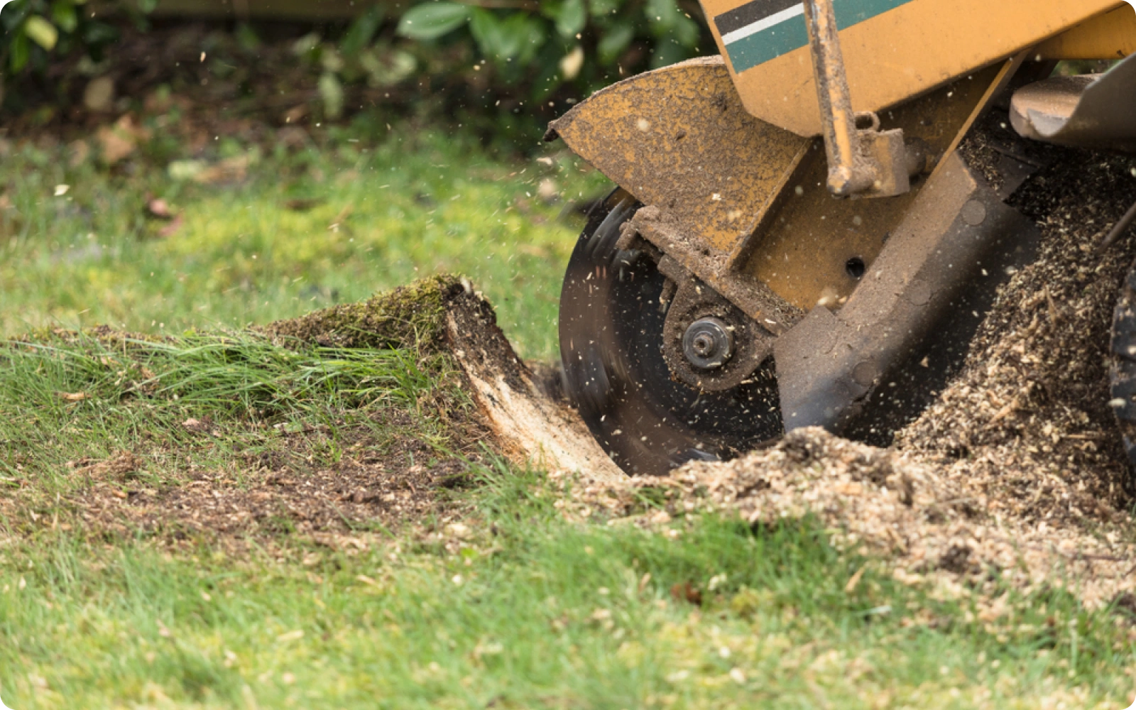 We mill stumps 150–300 mm under grade so mowers glide and roots can’t reshoot.